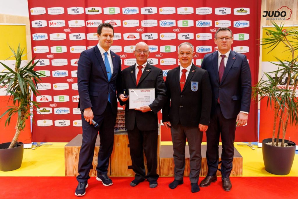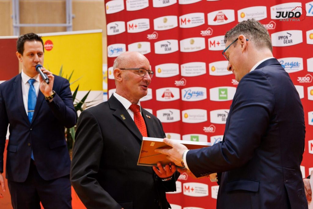 Im Rahmen der Österreichischen Staatsmeisterschaften am vergangenen Wochenende in Linz wurde er für seine jahrelange, verlässliche Tätigkeit als Kampfrichter mit der Goldenen Kampfrichternadel ausgezeichnet.